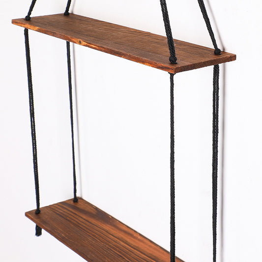 Vägghängd Mörk Trähylla med Bomullsrep